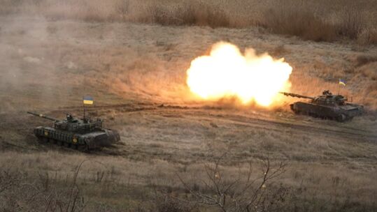 После небольшого митинга прямо у стеллы антитарифники включили песню "Вставай страна огромная" и, взяв украинские флаги и протестную растяжку, заблокировали пешеходный переход на площади.